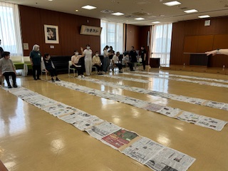 9月27日に開催した第2回糖尿病教室やってみようコースでは、6つのチームに分かれボッチャや新聞レースなどのレクリエーションを行い、楽しく体を動かしました。昼食には長野県看護大学の学生さんが考案した健康弁当をお配りし、食べ応えのある美味しいお弁当を味わっていただけたのではないでしょうか。